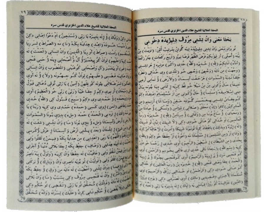 Et-Tühfetül Alâiyye (kürtçe ilmihal)Kütçe dilinde yazılmış özetle islamın temel bilgilerini içerenkürt kardeşlerimizin dilinde yazılmıştır arapça harflerleİçinde bazıları şunlardırKelime-i Şehadet Allah’ın Zat ve Sıfatları Hakkında Yüce Allah’ın her iki konuşması Hayr ve Şer Yüce Allah’ın Resul ve Enbiyaları Yüce Allah’ın Sahife, Kitap ve Melekleri Muhammed (a.s.v.)’ı Vasf Etme ve Nesebi İnsan ve Meleklerin Dereceleri Evliya ve İmamlar Hakkında Arş - Kürsü - Levh - Kalem Ecel - Rızıkve Başka Şeyler Hakkında Ölüm ve Kabir Sorgusu Kıyamet Alametleri Haşr - Neşr ve Başka Şeyler Hakkında Şefaat Hakkında Peygamber (asv) Havuzu Cehennem Hakkında Cennet Hakkında Ölü - Sağ ve Diğer Şeyler Hakkında Namazı Kılmayan Kişi Ramazan OrucuZekatı Vermeyen HakkındaGüzel ve örnek ibareleriyle ortaya çıkmış çok kıymetli TUHFETUL - ALAİYYE adını taşıyan bu eser, Pak şeriat’ın sancaklarını her tarafa yayan, tertemiz Nakşibendi Tarikatının adabının koruyucusu, irfan ve yakin madeninden içen, fazilet ve parlak zeka sahibi, muin olan Rabbine son derece muhtaç, Kamil ve Mükemmel Mürşit Kadimve Kerim olan Allah’a vesilemiz Nakşibendi meşrebinden, Şafi-i Mezhebinden zamanın en büyük alimi uzak yakın meşhur olan, El-Şeyh Alaeddin El-Haznevi’ye aittir. Allah onu sırrına takdiseylesin, ruhunu şad etsin, kabrini nurlandırsın, üzerimize onun ve şuan Şeyh izzeddin ve Eşşeyh Muhammed El Haznevi’den sonra şanı yüce, kadri yüksek ve yaygın, namı heryerde ve bölgede bilinen, kerem sahibi efendimiz, kamil, mürebbi, Şeyhimiz Şeyh Muhammed Mutaa El Haznevi hazretlerinin bereketlerinden yağdırsın, bizi onların makamlarından bolca nasiplenenlerden kılsın. Bu cevher onun malumatlarından sadır olmuştur. Bu kitap dört bölümden meydana gelmektedir. Birinci bölüm “Akaid” ile ilgilidir. İkinci bölüm “fıkıh” ile ilgili imamımız Şafii mezhebi’nin üzerine işlenmektedir. Üçüncü bölüm “Tasavvuf” ile ilgilidir. Dördüncü bölüm ise “Helal ve Haram” hakkındadır. “Başarım; ancak Allah’ın yardımı iledir. Yalnız O’na dayandım veyalnız O’na yöneldim” (Hud süresi ayet: 88)
