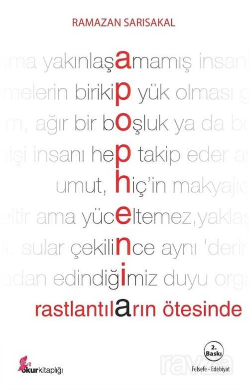 Apophenia yazarın felsefî denemelerinin yer aldığı bir birikim. Felsefe Psikoloji ve Edebiyat'ın birbirlerine geçişimli olduğu bölgelerdeki sınır çizgisinden okurun düşünsel kırkambarına yeni tohumlar taşıyarak notlar-fragmanlar biçiminde şekilleniyor. Apophenia boşluk yalnızlık hüzün melankoli düşüş geçmiş mitoloji çocukluk zaman delilik travma varlık ve hiçlik vb. konuların yanında Felsefe'nin dip köşe bucaklarında kıyılarında kalan göz ardı edilen konularına değinmeleriyle de dikkat çeken bir düşünmenin 'düşünüyor olmanın' verimidir.Apophenia rastlantıların ötesinde 'düşünme'nin hizmetinde titizlik ve incelikle notlar alan Felsefe'ye gönül indirmiş bir düşünce işçisinin zamana düştüğü kayıt olma niteliği yanında aslolan varsıllık içimizde olanın yoğunluğudur gerçeğinden hareketle muhatabını derin ve içrek zihinselliklere davet ediyor.Her davet kışkırtıcı düşünsel birlikteliklere yeni varlık biçimlerine farklı ve özgün varoluşlara uzun bir kapı aralar.Apophenia işte çokanlamlı ve çoğul zihinselliklere yönlendirmesiyle bu daveti fazlasıyla yerine getirir ve okur her yazıyla birlikte Dünyanın Anlamına varsıllaşmış olarak geri döner...Kışkırtıcı zihinsel beraberlikler için Apophenia hemen yanınızda...