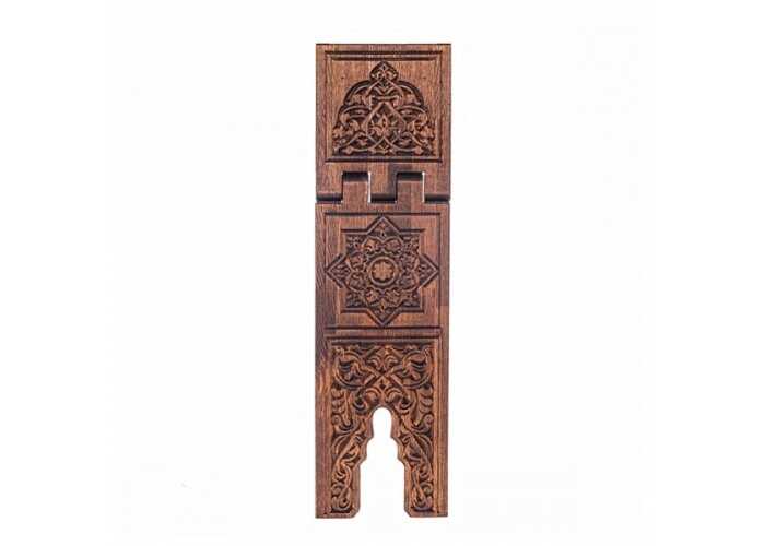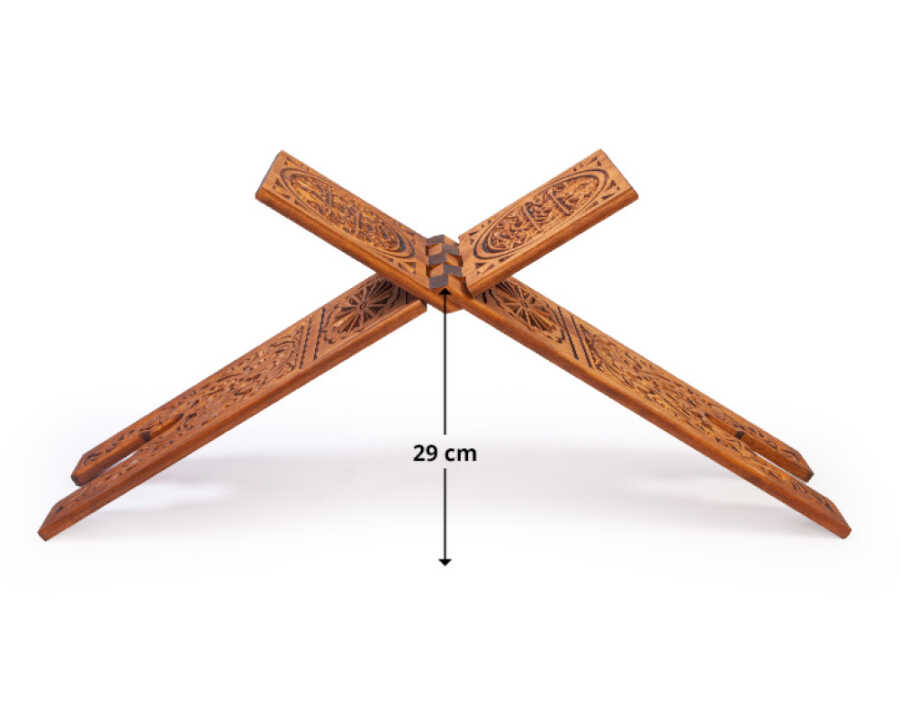 Ahşap Oyma Rahle Hakkında Ürün Ebatı En : 18 cm Boy : 75 cm Açıldığında Yükseklik : 30 cm Bu ürün kızıl çam ağacından yapılıp üzerindeki işleme modeli selçuklu desen kullanılıp cnc oyma tekniği ile işçilik verilmiştir. Ürün kızılçam ağacından tek parça dan yapılmıştır. Ürün üzerinde selülozik ve sentetik vernik yoktur. Çürüme ve kurt yememesi için tik yağı ile korumaya alınmıştır.