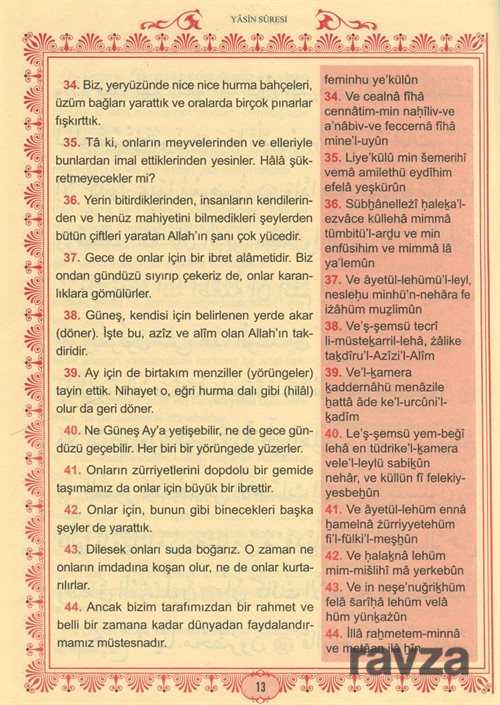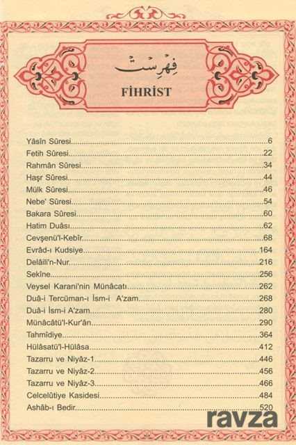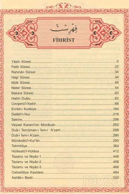 Gelince Haber VerHizb-ü Envaril Hakaikın NuriyeBüyük Cevşen ve Türkçe Meali (Üçlü Cevşen) Tecvidli Transkripsiyonlu Türkçe Okunuşu (Ashab-ı Bedir ve Celcelütiye İlaveli)Tertip ve Tanzim; Bediüzzaman Said NursiBüyük cevşen Bilgisayar hatlı kolay okunuşlu arapça ile hazırlanmış Arapçanın Transkripsiyon usulü ile Tecvidli Türkçe okunuş'la arapça okumasını bilmeyenler için büyük kolaylık sağlıyor. Günümüz Türkçesiyle açıklamalı Meali okuduğumuzu anlamamıza yardımcı oluyor. İçindekiler:Yâsîn Sûresi - Fetih Sûresi - Rahman Sûresi - Haşr Sûresi - Mülk Sûresi - Nebe' Sûresi - Bakara Sûresi - Hatim Duası - Cevşenü'l-Kebîr - Evrâd-ı Kudsiye - Delâili'n-Nur Sekine - Veysel Karani'nin Münâcatı - Duâ-i Tercüman-ı Ism-i A'zam - Duâ-i İsm-i A'zam - Münâcâtü'l-Kur'ân Tahmîdiye - Hülâsatü'l-Hülâsa - Tazarru ve Niyâz-1 - Tazarru ve Niyâz-2 - Tazarru ve Niyâz-3 - Celcelûtiye Kasidesi - Ashâb-ı Bedir.