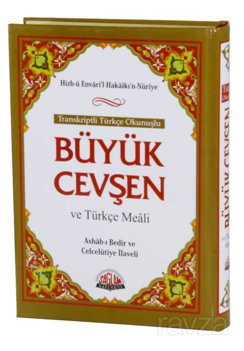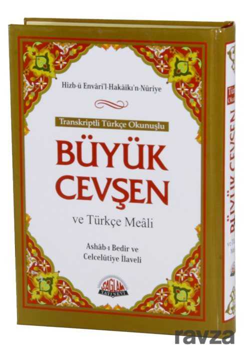 Hizb-ü Envaril Hakaikın NuriyeBüyük Cevşen ve Türkçe Meali (Üçlü Cevşen) Tecvidli Transkripsiyonlu Türkçe Okunuşu (Ashab-ı Bedir ve Celcelütiye İlaveli)Tertip ve Tanzim; Bediüzzaman Said NursiBüyük cevşen Bilgisayar hatlı kolay okunuşlu arapça ile hazırlanmış Arapçanın Transkripsiyon usulü ile Tecvidli Türkçe okunuş'la arapça okumasını bilmeyenler için büyük kolaylık sağlıyor. Günümüz Türkçesiyle açıklamalı Meali okuduğumuzu anlamamıza yardımcı oluyor. İçindekiler:Yâsîn Sûresi - Fetih Sûresi - Rahman Sûresi - Haşr Sûresi - Mülk Sûresi - Nebe' Sûresi - Bakara Sûresi - Hatim Duası - Cevşenü'l-Kebîr - Evrâd-ı Kudsiye - Delâili'n-Nur Sekine - Veysel Karani'nin Münâcatı - Duâ-i Tercüman-ı Ism-i A'zam - Duâ-i İsm-i A'zam - Münâcâtü'l-Kur'ân Tahmîdiye - Hülâsatü'l-Hülâsa - Tazarru ve Niyâz-1 - Tazarru ve Niyâz-2 - Tazarru ve Niyâz-3 - Celcelûtiye Kasidesi - Ashâb-ı Bedir.