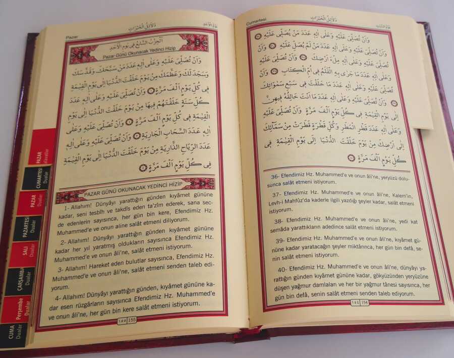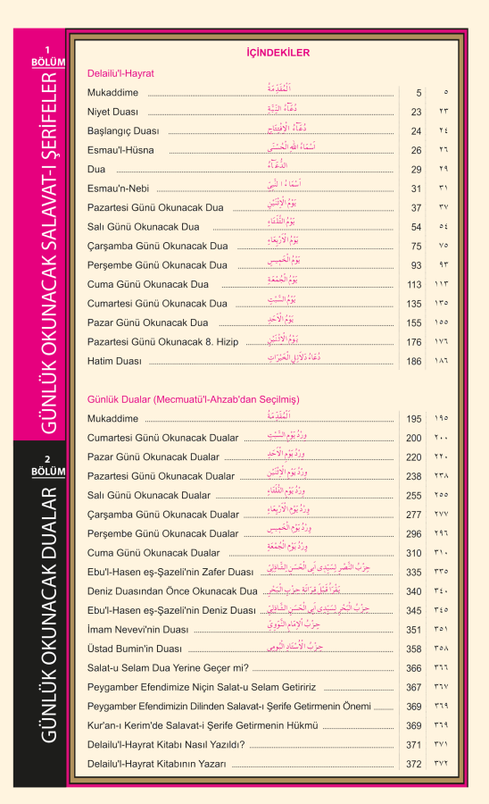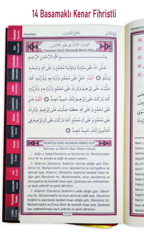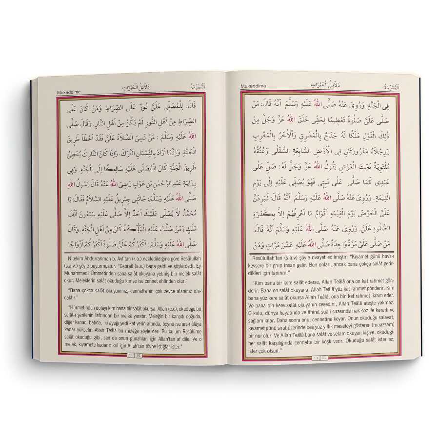 bu kitap muhammed bin süleyman el-cezuli(k.s.) tarafından yüzyıllar önce hazırlanmış ve 7 gün boyunca her gün okunacak olan salavat-ı şerifeler ve 7 gün boyunca her gün okunacak dualardandan oluşmaktadır. bu salavt-ı şerifelerin hem arapça metinleri ve hemde türkçe mealleri yer almaktadır. ayrıca 7 gün için,kitab’ın kenar kesimi yapılarak 14 basamak fihrist şeklinde yapılmışve istifadenize sunulmuştur