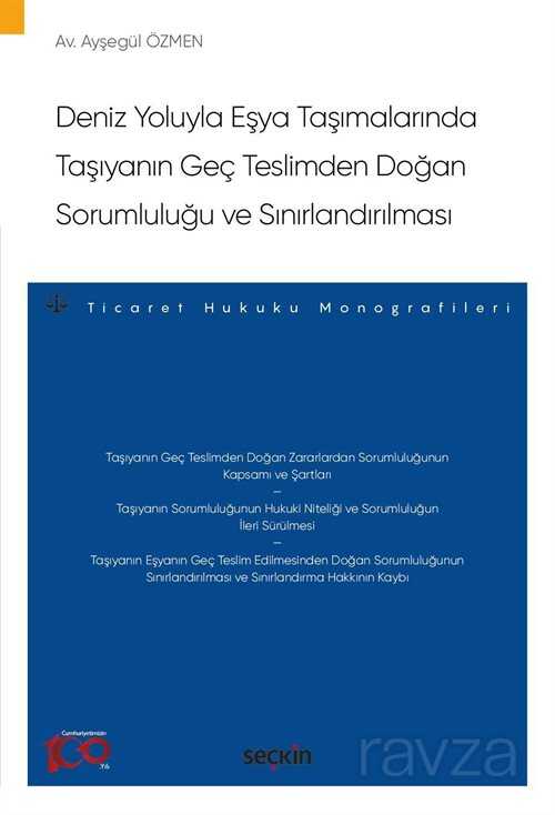 Gelince Haber VerLiteratürde taşıyanın sadece geç teslimden doğan sorumluluğunu ayrıntılı olarak inceleyen monografik eser sayısı oldukça azdır. Bu nedenle bu kitapta özel olarak bu konuyu ele alan bir eser ortaya konulması amaç edinilmiştir. Türk hukukunda 6102 sayılı son Türk Ticaret Kanunu'na kadar düzenlenmemiş bir konu olan "Deniz Taşımalarında Taşıyanın Geç Teslimden Doğan Sorumluluğu" ilk kez uluslararası sözleşmelerle ortaya konulmuştur. Bu nedenle uluslararası alanda yapılan düzenlemelerin Türk hukuku ile karşılaştırmalı olarak ele alınması konunun daha iyi anlaşılması adına büyük önem taşımaktadır.