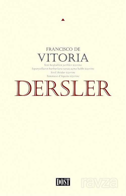 Farklı okumalarla tabii hak ve iletişim kuramının uluslararası hukukun modern hukuki-siyasi düşüncenin Altın Çağ Salamanca Okulu'nun ya da ikinci skolastik akımın öncüsü kabul edilen Francisco de Vitoria yaşamı boyunca hiçbir yazılı eser yayınlamamıştır. Düşünceleri Salamanca Üniversitesi'nde yirmi sene boyunca verdiği derslerin kendisi ya da öğrencileri tarafından hazırlanan yazılı kopyalarıyla günümüze ulaşır. Kitapta yer alan ve Türkçeye ilk defa çevrilen dersler Vitoria'nın Salamanca Üniversitesi'nde Tommaso d'Aquino düşüncesi üzerine verdiği derslerden ve yıl boyunca verilen olağan derslerin en önemlilerinden ya da hem dönemi hem de her dönem için güncel konuları ele aldığı Dersler'den oluşuyor: Yerliler Üzerine Savaş Hakkı Üzerine Sivil İktidar Üzerine.