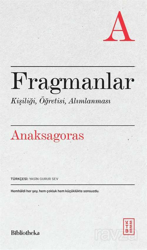 Klazomenai'de varlıklı bir aileye mensup Anaksagoras'ın aile mirasıyla ilgilenmeyip felsefe öğrenimi için genç yaşta memleketini terk edişini felsefe ateşini İyonya'dan Atina'ya taşıyan kişi olmasını göktaşı yağmuru ve deprem tahminlerinin tutmasıyla ün yapmasını Euripides'in hocası ve Perikles'in danışmanı olmasını her şeyin başının birbiriyle hemhâl olan eş parçalılar veya tohumlar olduğunu öne sürmesini bunları ayrıştıran ve çekip çeviren bir kozmik akıl fikrini ortaya atmasını her şeyde her şeyden bir parça olduğunu söylemesini gökbilim ve felsefe tutkusunun Atina'da dinsizlikle suçlanmasına neden olmasını danışmanlığını yaptığı Perikles sayesinde idamın eşiğinden dönmesini nihayet Lampsakos'a çekilip burada ölümü beklemesini ve daha bir çok şeyi...