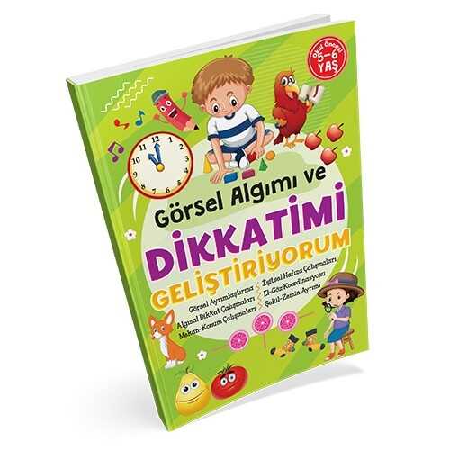 Gelince Haber VerGörsel Ayrımlaştırma, Algısal Dikkat Çalışmaları, Mekân-Konum Çalışmaları, İşitsel Hafıza Çalışmaları, El-Göz Koordinasyonu, Şekil-Zemin Ayrımı Okul öncesi eğitim, çocuklarımızı ilkokula hazırlayan en önemli basamaktır. Bu dönemde çocuklarımızın, becerileri ve zekâ gelişimlerini destekleyecek etkinlikler yapmaları büyük önem taşır. "Görsel Algımı ve Dikkatimi Geliştiriyorum" kitabında çocuklarımızın öğrenme becerileri kazanmaları hedeflenmiştir. Kitaptaki aktiviteler, ebeveynler ya da öğretmenler eşliğinde yapılmalıdır. Yönergeler çocuklara okunmalı ve onların uygulanması istenmelidir. Eğlenerek yapacakları bu etkinlikler sayesinde çocukların dikkati artacak, işitsel algısı gelişecek ve yönergeleri kavrayarak uygulaması mümkün olacaktır..