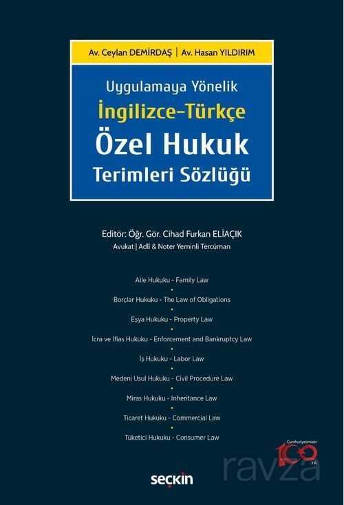 Uygulamaya yönelik İngilizce - Türkçe Özel Hukuk Terimleri sözlüğü adlı çalışmamız, kanun maddeleri okunarak ve uygulamada sıklıkla karşılaşılan hukuk terimleri dikkate alınarak hazırlanmıştır, ilgili terimin hem kanun maddesinde geçtiği şekliyle hem de anlaşılmasını kolaylaştıracak örnek cümlelerle desteklenmesi sebebiyle, gerek dilbilgisi gerekse terminolojik açıdan ilgili terimin kavranmasını kolaylaştırmaktadır.