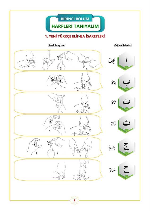 Bu eser, işitme engellilerin Kuranı doğru ve tecvidli bir şekilde öğrenmeleri için hazırlanmıştır. Çalışma iki ana bölümden oluşmaktadır:1. Bölüm: Türk İşaret Dilindeki mevcut harf eksikliklerini giderir. Sesleri birbirine benzeyen harfler için yeni, bağımsız işaretler geliştirilmiş ve böylece anlam karışıklıklarının önüne geçilmiştir. "Onların sesi elidir" felsefesiyle, tecvid kuralları ellere işaretlerle yansıtılmıştır.2. Bölüm: Arap İşaret Diline harekeler ve tecvid kurallarını gösteren teknik semboller eklenerek, dünyadaki tüm işitme engellilerin ortak bir "Dünya Kuran İşaret Dili" ile orijinal Arap harflerinden Kuran okuyabilmesi sağlanmıştır.Uluslararası çalıştaylarda kabul gören bu eser, alanındaki ilk çalışma olup, işitme engellilere Kuranı usulüne uygun okuma imkanı sunmaktadır.