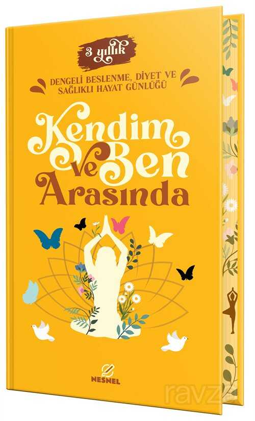 Yüksek kalite 1. hamur kağıt üzerine 2 renk baskı yapılarak sert kapaklı ciltli ve özel boyamalı olarak hazırlanan "Kendim ve Ben Arasında - Dengeli Beslenme Diyet ve Sağlıklı Hayat Günlüğü" herkesin elinin altında