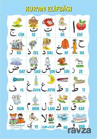 Çocuğun etrafındaki eşya ve nesnelerin resimleri ile harfler ve harekeleri arasında ilişki kurarak harfleri ve harekeleri öğretmek amaçlanmıştır. Posterin bir yüzünde yalnızca harfler ve nesne resimleri vardır. Posterin ikinci yüzünde ise harekeler ve harekelere uygun nesne resimleri vardır.