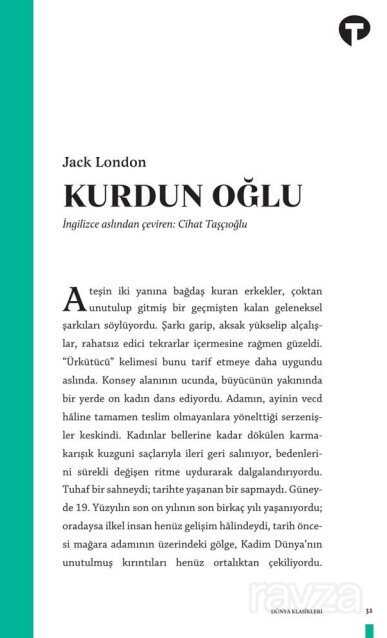 Vahşetin Çağrısı Beyaz Gölge Martin Eden gibi romanların yazarı Jack London ilk ününü altına hücum çağı öyküleriyle kazanmıştı. İnsanın vahşi doğada hayatta kalma mücadelesini anlatan Kurdun Oğlu bu öykülerin derlenmesinden oluşan bir kitap. Mirasının peşinden giden ve kemiklerini kutup dairesinin gölgelerinde bırakan kurdun oğullarına