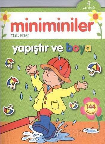 Yağmur yağıyor her yer ıslak! Şemsiyeleri sayfa içine yapıştır sonra çizimin renkli çıkartma örneğini bul. Şimdi resmi boyayabilirsin. Her sayfada 2 aktivite var: Çıkartmalarla tamamlanacak bir nesne ve örnek çıkartma modeline göre boyanacak bir resim. Çocuklann becerisini ve gözlem duygusunu geliştirmek için ideal! Haydi miniminiler yapıştıralım ve boyayalım!