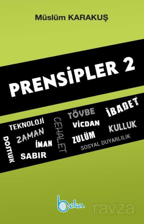 Hayatın akışında savruluyoruz. Su yutuyoruz kayalara çarpıyoruz üşüyoruz yaralanıyoruz boğuluyoruz çoğu zaman. Hayat şakaya gelmiyor boş vermişlikle yaşamaya ise hiç gelmiyor. Bir ömürlük dünyada rastgele ve amaçsızca yaşamak hayatı çekilmez ve anlamsız kılıyor. Akıl irade vicdan adalet gibi duygularla donanmış ruhumuz bu boş vermişliği kaldıramıyor. Bu yüzden mutsuz oluyoruz bu yüzden her şey tam gibi gözükse de hep bir şeyler eksik geliyor.İnsan ancak prensiplerle kendisini tamamlar. Prensipler sayesinde hayat dehlizlerinde aydınlanır dünyanın olumsuzluklarına karşı direnç kazanır ve en önemlisi anlamlı olur. Prensipler bana en karanlık olduğum dönemlerde ışık tuttu. El uzattı kendimi kuyularda hissettiğim zamanlarda. İnancımı koruyabileceğim bir kalkan sığınabileceğim bir liman oldu.Kitapların devamı olur mu filmler gibi? Veya bir sonraki kitap ilkinin tamamlayıcısı ya da varisi midir aynı adı taşımasına rağmen? Ben pek inanmıyorum buna. Aslında hepsi ayrı dünyalar ayrı iddialar taşır içinde. Aynı konu veya karakterlere sahip olsalar bile her kitap kendi evreninde var olur ve biter. Ardından gelen onun anılarında yürür sadece. Fakat Prensipler'de durum böyle değil. Çünkü Prensipler serisi aslında tek bir kitap. Birincisi bir kısmıydı ikincisi ise diğer kısmı. İnsanlar çok olan birçok iyi şeyi sevmelerine rağmen çok sayfadan ve çok kitaptan korkma eğilimindeler. Bu yüzden iki parça yayınlandı Prensipler.Başlarda kendimi ikna etmek için yazdıklarım yeniden prensiplere dönüştü. Yine taştı kelimeler taştı cümleler ve bir kez daha sizlere kadar ulaştı. (Elhamdülillah!)Bu kitap varlıksal sorular arasında kalmış hayatın geçici ve sanal çeldiricilerinden bıkmış başıboşluktan ve gelişigüzellikten bunalmış menfaatlerin ve zevklerin merkezde olduğu bir düzende içinde isyan tohumları yeşermiş olanlara bir yol haritası olsun diye yazıldı.