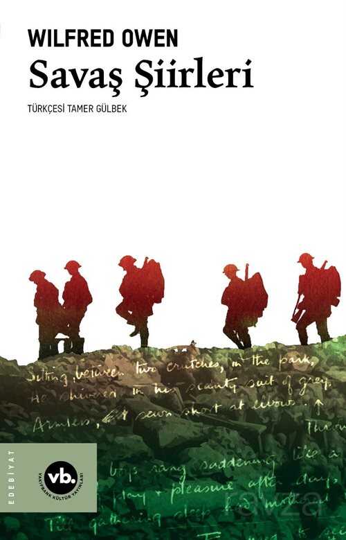 Asker ve şair Wilfred Owen'ın Savaş Şiirleri asker ve şair Tamer Gülbek'in duru Türkçesiyle tam yüz yıl sonra dilimize kazandırılıyor. Birinci Dünya Savaşı edebiyatının en önemli isimlerinden biri olan Owen (1893-1918) savaşta İngiltere adına teğmen rütbesiyle görev yapmış ve savaşın bitmesine çok kısa bir süre kala cephede hayatını kaybetmiştir. Owen Birinci Dünya Savaşının ve genel olarak tüm savaşların yol açtığı büyük acıları şiir sanatının en güzel örneklerini verecek şekilde dizelere dökmüştür. Çağdaş akademi dünyası Owen'ın eserlerini savaş koşullarında savaşa dair yazılmış en çarpıcı şiirler olarak görmekte ve onun sonraki nesiller üzerindeki derin etkisini teslim etmektedir.