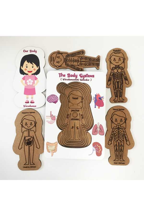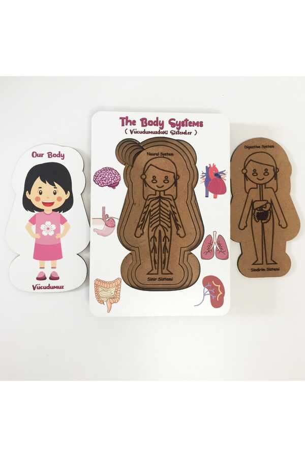 Montesori eğitimine uygun ahşap zeka geliştirici parça tamamlama sağlayan eğitici boyanabilir sağlıklı oyuncak ISO belgeli 13*18 cm boyutundaVücudumuz Sistemleri - Kız Eğitici Öğretici Geliştirici Boyanabilir Ahşap Sağlıklı Oyuncak