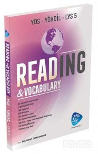 Her biri güncel konular hakkında yazılmış 50 metinden oluşan READING kitabı hem öğrencilere hem de öğretmenlere benzersiz bir sınav hazırlığı imkanı sunuyor. İster tek başına (self-study) ister sınıf ortamında eğitmen eşliğinde kullanılabilecek READING Kitabında Parça tamamlamadan eş anlam ve zıt anlam eşleştirme egzersizlerine YDS YÖKDİL ve LYS*5 tarzına uygun paragraf sorularından açık uçlu sorulara her bir parça için toplam 8 farklı alıştırma türü bulunuyor. YDS YÖKDİL ve LYS-5'te en çok kullanılan ve özenle seçilmiş akademik kelimelerin farklı türdeki alıştırmalarla pekiştirilmesi sınavların en önemli unsurlarından biri olan kelime bilgisin kusursuzlaştırırken güncel konulara değinen akılda kalıcı metinler hem okuma anlama yeteneğini geliştiriyor hem de sınavda en çok çıkan gramer yapılarının kullanımını örnekliyor. Sınav hazırlığı için hayati derecede önem taşıyan bir çok farklı çalışmayı tek bir kaynakta toplayan READING gerçek bir sınav rehberi.50 Güncel Okuma Parçası3.000 Hedef Kelime500 Synonym500 Antonym500 Kelime Çevirisi250 Cümle Tamamlama500 True - False - Not Mentioned Alıştırması250 Paragraf Sorusu250 Açık Uçlu Soru